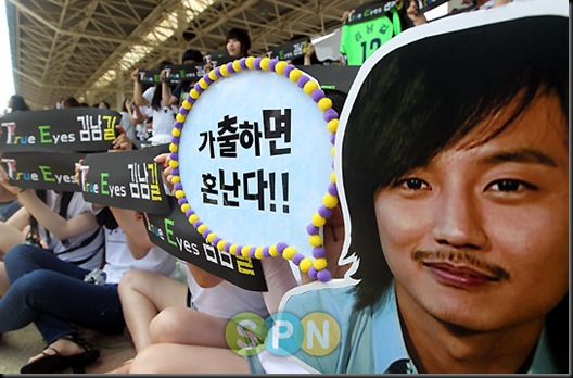 ในส่วนของด้านหน้ากรมทหารนั้น ก็เต็มไปด้วยแฟนคลับที่เดินทางมาส่ง “คิมนัมกิล” กันเป็นร้อยๆ คน โดยมีรายงานว่ามีทั้งแฟนคลับชาวเกาหลี ญี่ปุ่น ไต้หวัน ฮ่องกง อินโดนีเซีย มาเลเซีย (ข่าวไม่ได้ระบุว่ามีแฟนคลับคนไทยไปด้วยหรือไม่) ทุกคนต่างก็ช่วยกันทำป้าย เสื้อ ธง ต่างๆ เพื่อใช้ชูให้นัมกิลได้เห็นขณะออกมาให้สัมภาษณ์เพื่อร่ำลาแฟนๆ ก่อนเข้ารับใช้ชาติ